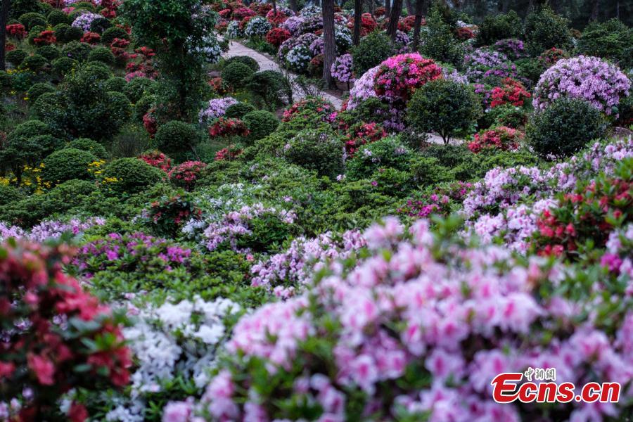 Azalea flowers are in full blossom on Nanshan Mountain in Fangniu village, Chongqing, southwest China, March 28, 2022. Some 3 hectares of blooming azalea shrubs created an amazing sight for tourists. (Photo: China News Service/He Penglei)