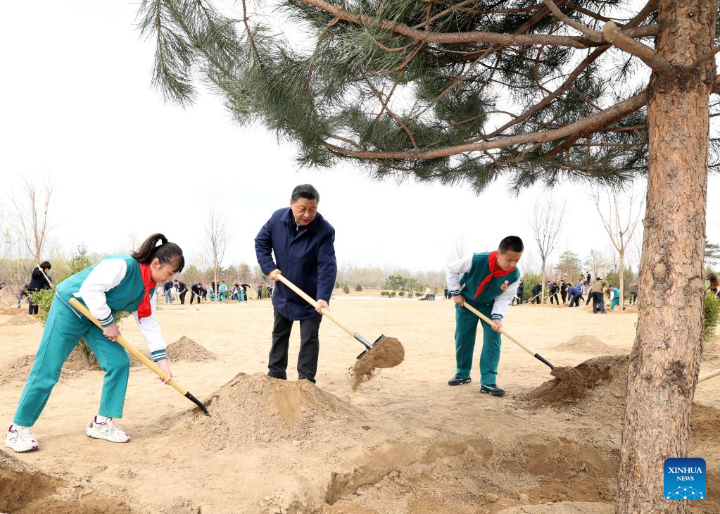 BEIJING, March 30 (Xinhua) -- Participating in Beijing's tree planting activity on March 30, Xi Jinping, General Secretary of the Communist Party of China (CPC) Central Committee, President of the People's Republic of China and Chairman of the Central Military Commission, said that he had participated in such activities for 10 consecutive years. "I want to do my bit for the Beautiful China initiative, and also to sow the seeds of ecological conservation in the entire society, among the Chinese youth in particular," he stressed. Xi said that he intends to call on all Chinese people to act as participators and promoters in the endeavor for ecological conservation. "With perseverance and accumulated efforts, we will be able to make our country's sky bluer, mountains lusher, waters clearer and the environment more beautiful," he said.