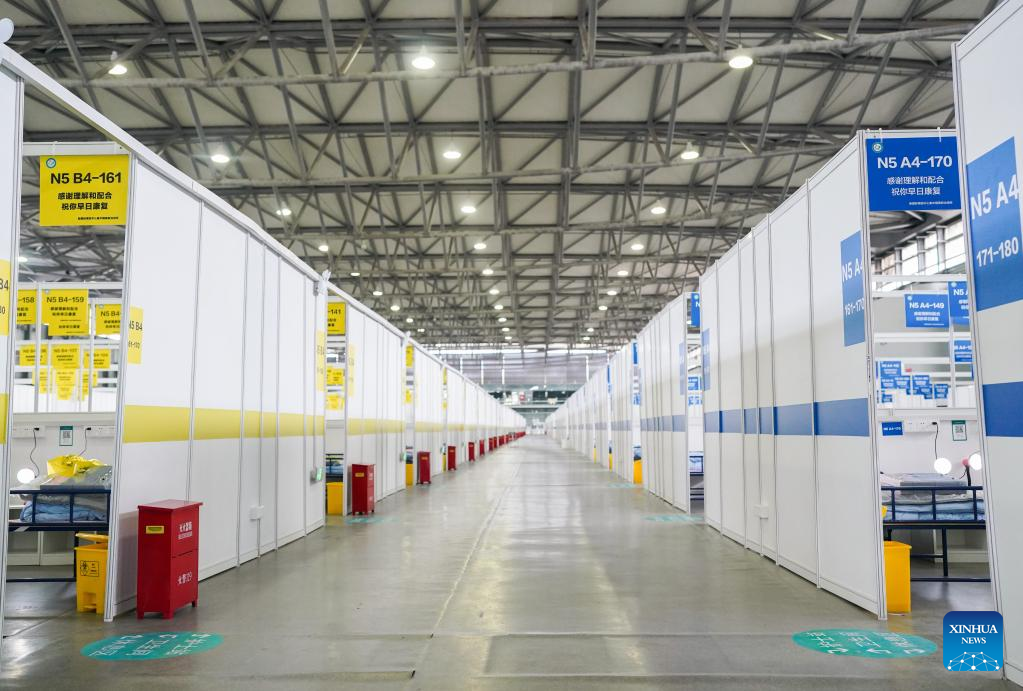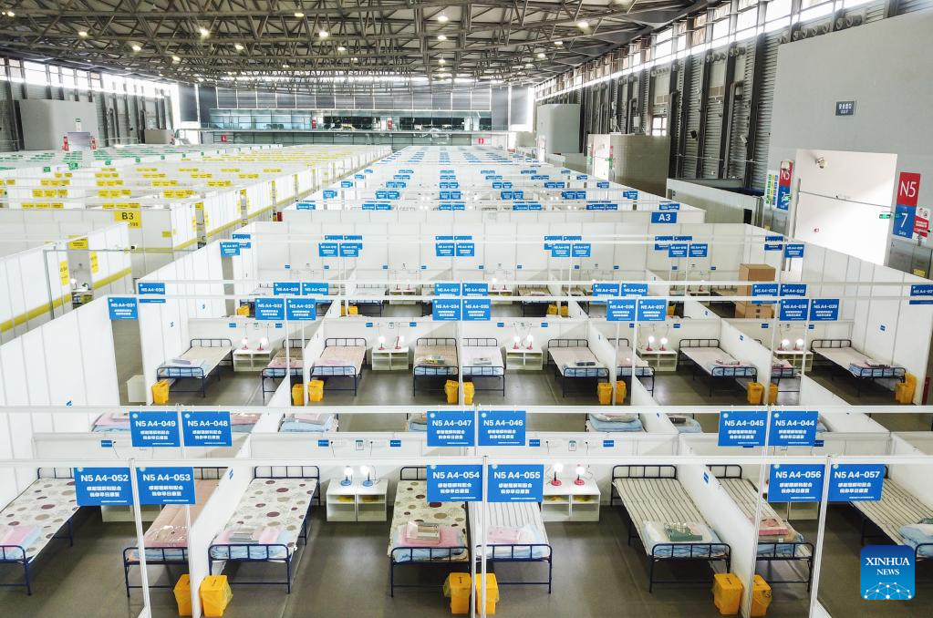 Photo taken on March 30, 2022 shows the quarantine zone at the Shanghai New International Expo Center in east China's Shanghai. Shanghai converts the expo center into a venue to quarantine mild cases and asymptomatic carriers amid the latest COVID-19 resurgence. It will provide over 15,000 beds after completion. (Xinhua/Ding Ting)