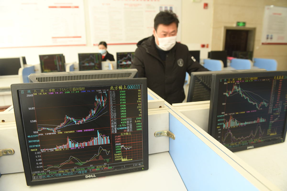 An investor checks share prices at a brokerage in Fuyang, Anhui province. WANG BIAO/FOR CHINA DAILY