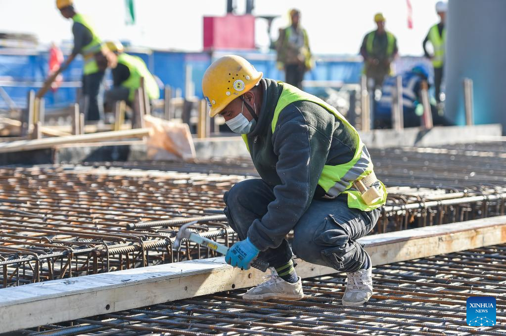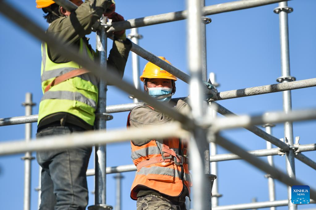 Workers work at the construction site of a new airport in Hohhot, capital of north China's Inner Mongolia Autonomous Region, March 30, 2022.