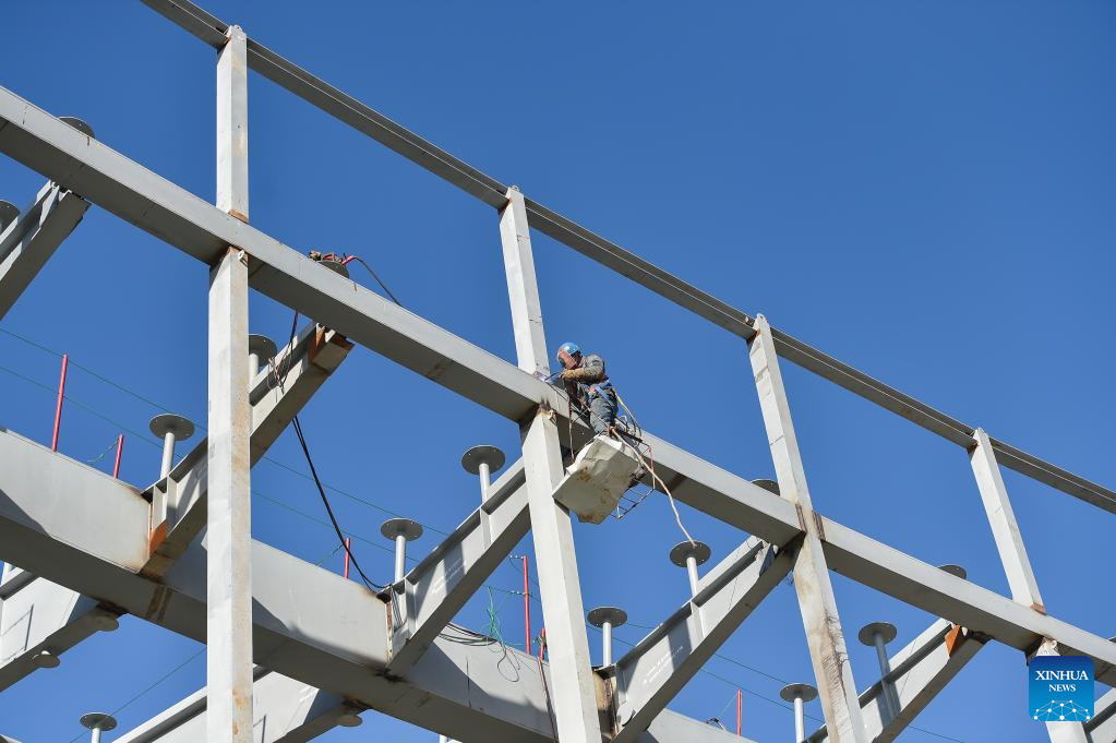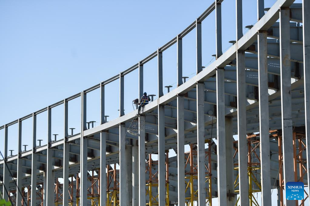 Construction on the new airport in Hohhot has been resumed recently, after a period of suspension due to the latest resurgence in COVID-19 infections. (Xinhua/Liu Lei)