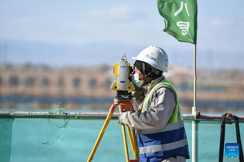A worker works at the construction site of a new airport in Hohhot, capital of north China's Inner Mongolia Autonomous Region, March 30, 2022.