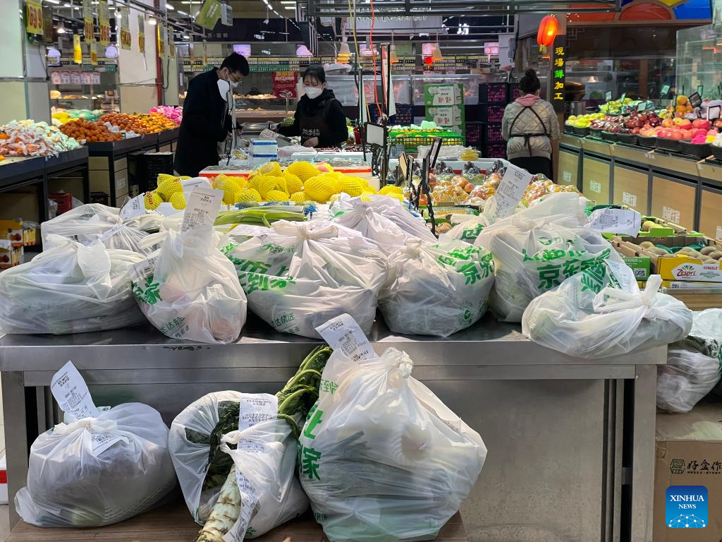 Photo taken with a mobile phone shows parcels to be delivered at a supermarket in Shenyang, northeast China's Liaoning Province, March 30, 2022.