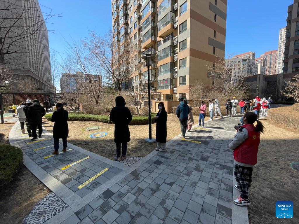 In this mobile phone photo, residents queue up for nucleic acid testing in Shenyang, northeast China's Liaoning Province, March 30, 2022.chenliqun