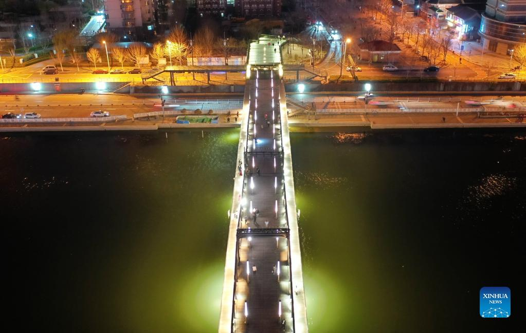 Aerial photo taken on March 27, 2022 shows the Jiefang bridge over the Haihe River in north China's Tianjin. (Xinhua/Li Ran)