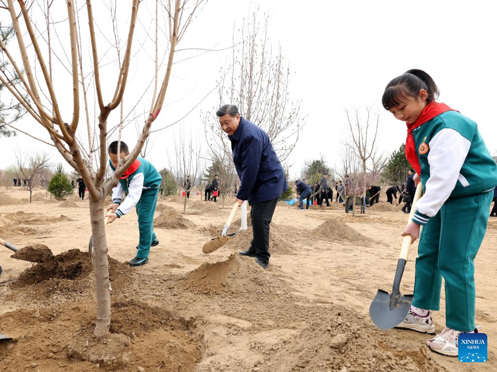 BEIJING, March 31 (Xinhua) -- Chinese President Xi Jinping on Wednesday planted trees in Beijing in the 10th year of his participation in the annual tree-planting activity as the top leader, demonstrating how much he values efforts to make the country's land greener.