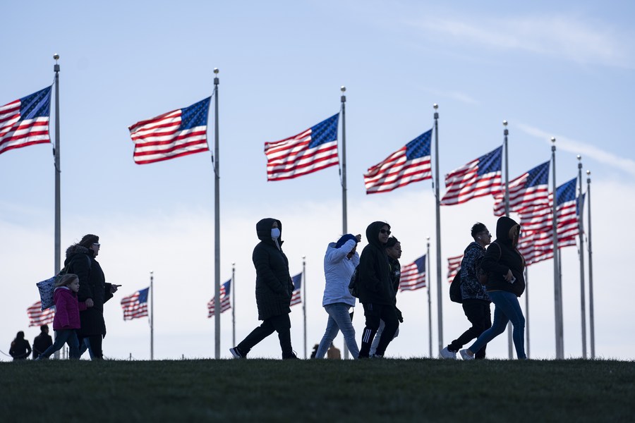 People visit the National Mall in Washington, D.C., the United States, on March 29, 2022. The total number of COVID-19 cases in the United States topped 80 million this day, according to data from Johns Hopkins University. (Xinhua/Liu Jie)