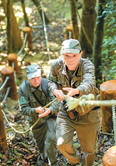 Photo shows forest rangers in the Hainan Tropical Rainforest National Park in south China’s Hainan Province. (Photo/Wang Chenglong)