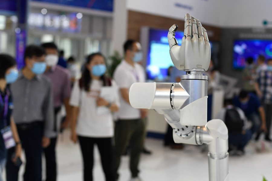 A robot system is displayed at the 10th China Smart City and Intelligent Economy Expo in Ningbo, east China's Zhejiang Province, Sept. 11, 2020. (Xinhua/Huang Zongzhi)