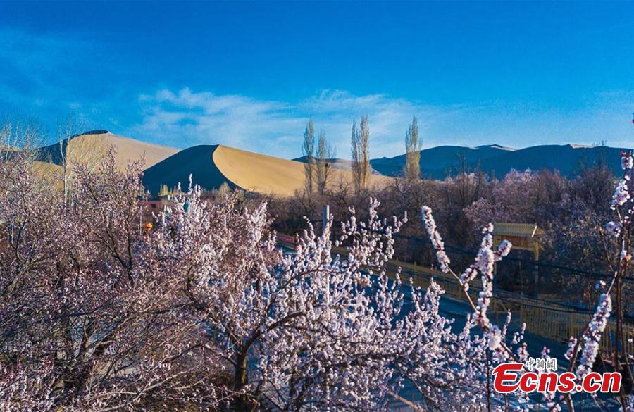 Apricot blossoms add charm to Mingsha Mountain in Dunhuang (4)