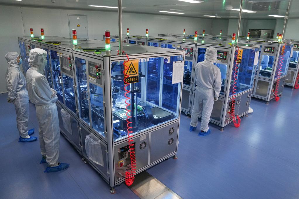Staff members work at a production line of COVID-19 self-testing kits at Biouhan healthcare company in Hefei, east China's Anhui Province, March 29, 2022. Since March 11, China has added antigen detection as an option for COVID-19 testing among the public. Such kits are already seen in drug stores, online platforms and multiple detection scenarios in China. With a capacity of up to 10 million kits per day, Biouhan healthcare company is a major manufacturer of COVID-19 antigen self-testing kits in east China's Anhui Province. The testing kits have been used in transportation hubs in Hefei, Anhui Province. (Xinhua/Du Yu)