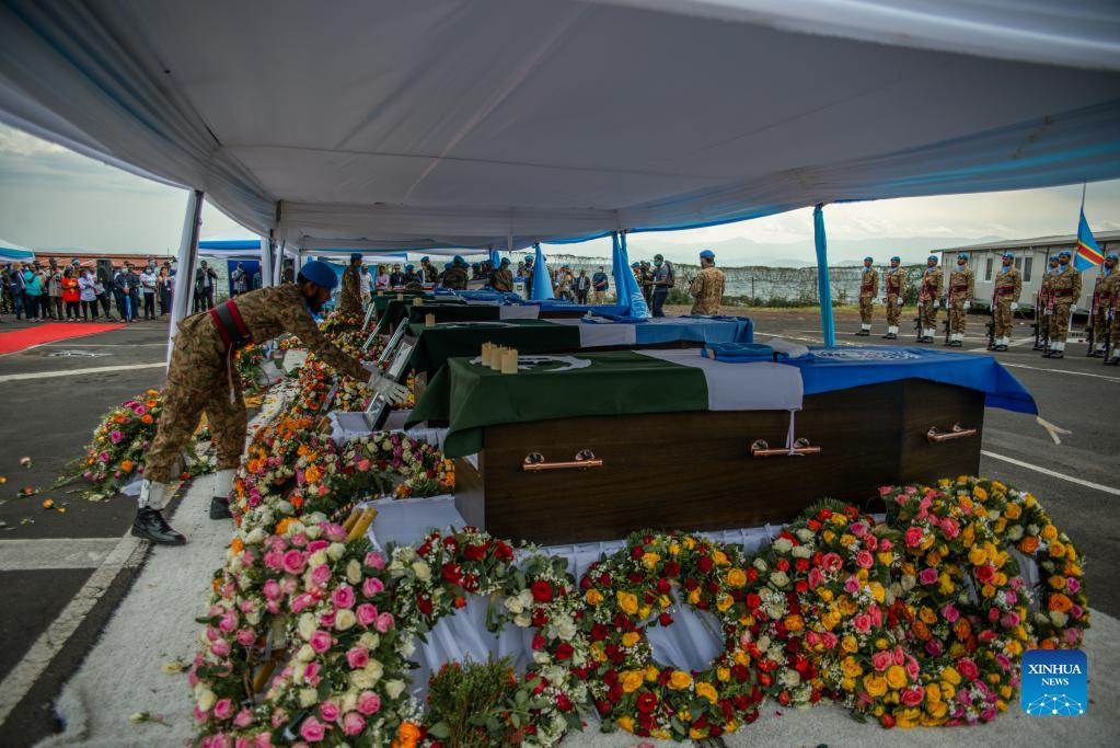 GOMA, DR Congo, April 2 (Xinhua) -- UN peacekeeping mission in the Democratic Republic od the Congo (MONUSCO) paid a final tribute Saturday to the eight peacekeepers who died during a helicopter crash Tuesday in northeastern DRC.