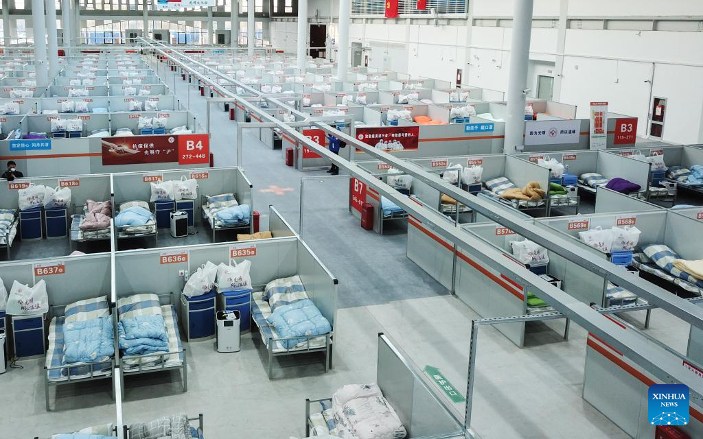 The operation of the child-parent section of the fangcang at the Shanghai New International Expo Centre signifies that this makeshift hospital with a capacity of 15,000 beds has become fully operational.