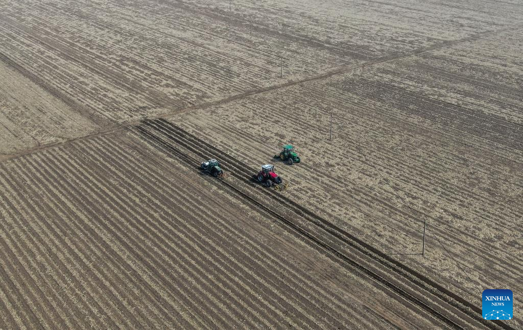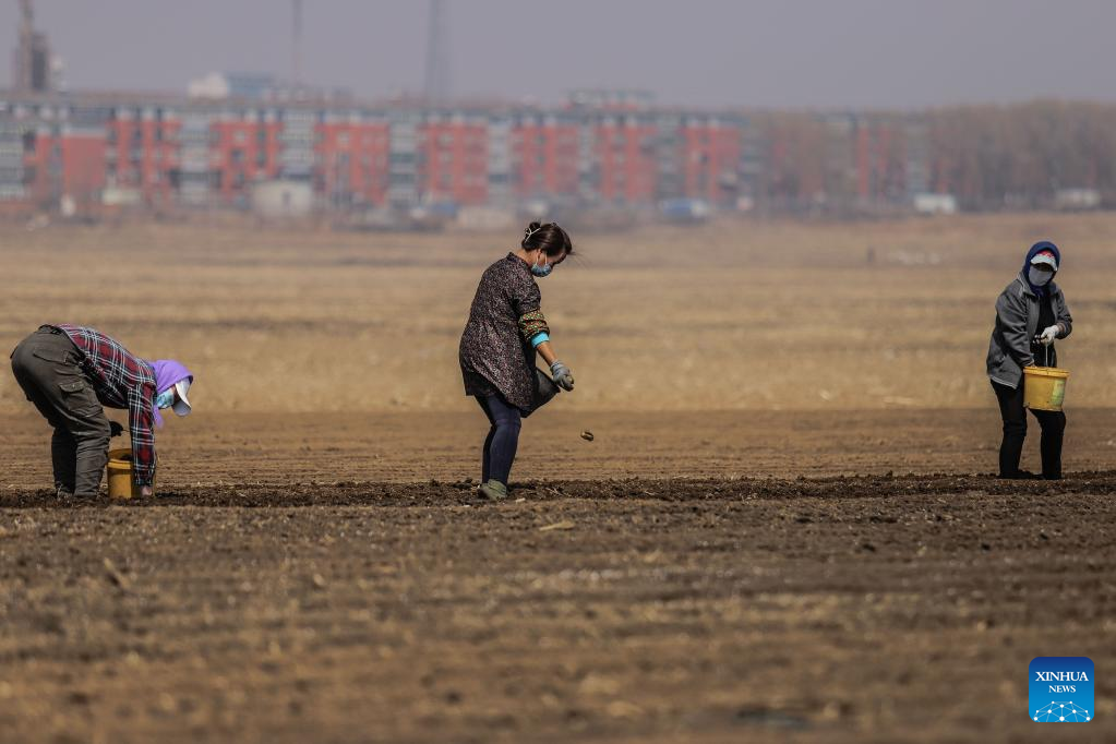 Farmers prepare to plant potatoes in Cainiu Town of Tieling County in northeast China's Liaoning Province, April 9, 2022. (Xinhua)