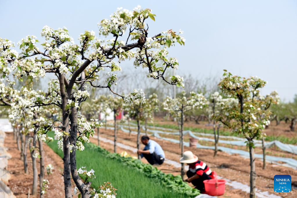 Farmers work in fields in Sangzhuang Village of Tancheng County in Linyi, east China's Shandong Province, April 11, 2022.