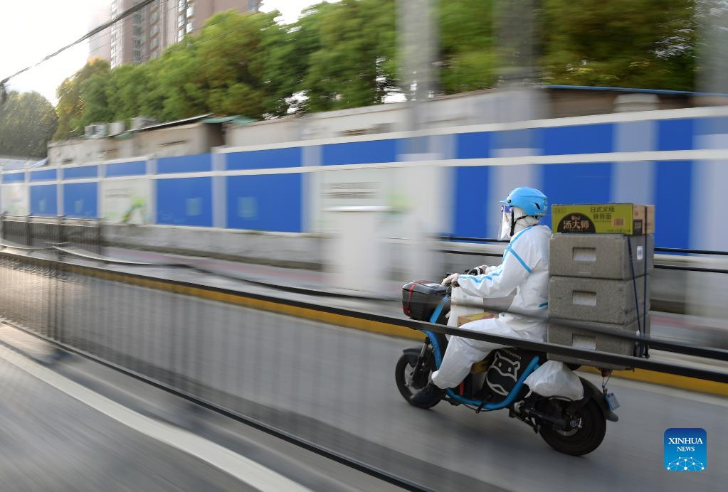 Deliveryman of Hema Fresh sends orders amid COVID-19 resurgence in Shanghai