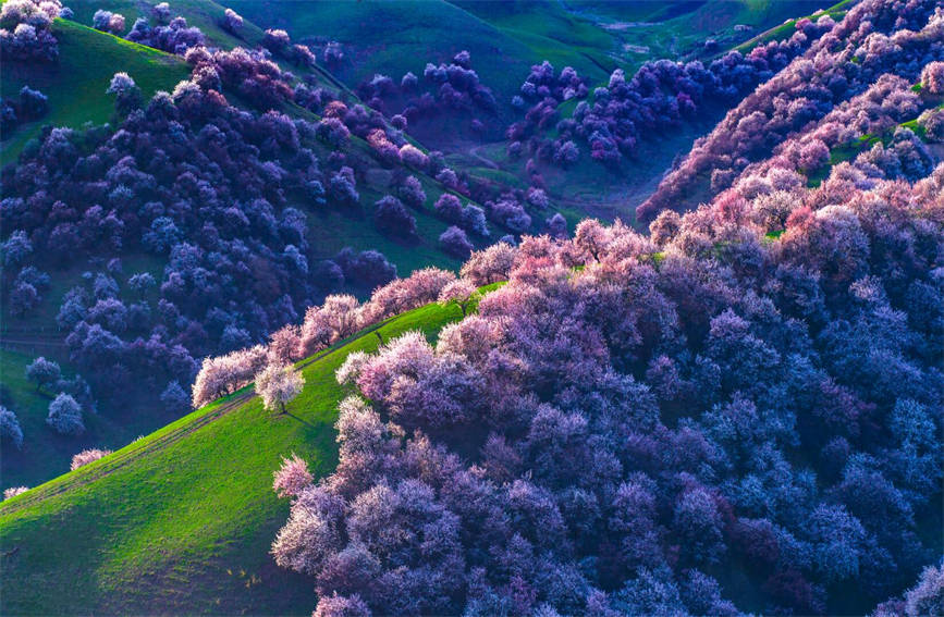 Spring is the best season for tourists to hike in the wild apricot forests of the Narathi Apricot Valley, Xinyuan county, northwest China's Xinjiang Uygur Autonomous Region. (Photo/Yang Xiaoqian)