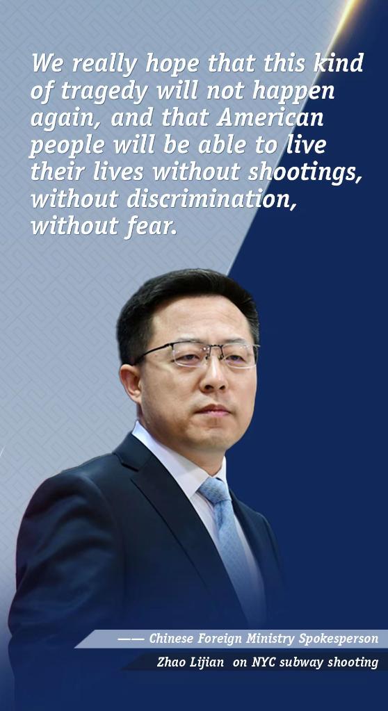 Zhao said that recurring tragedies like the Brooklyn subway shooting are a part of the chronic problem of the proliferation of guns and gun violence in the United States, which is in turn a part of the country's chronic human rights problem.