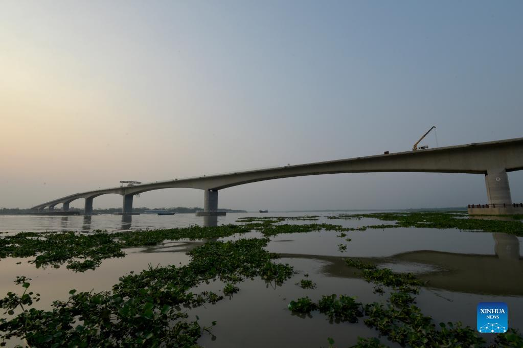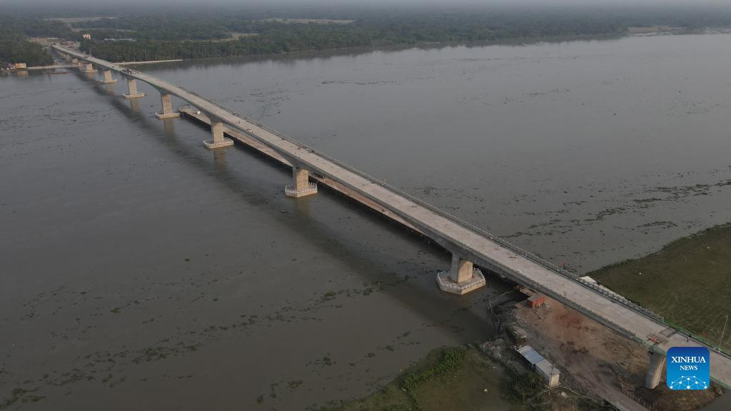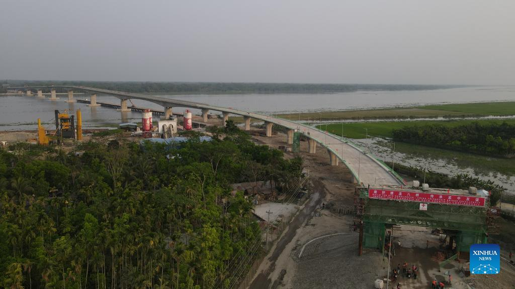 Aerial photo taken on March 23, 2022 shows the eighth Bangladesh-China Friendship Bridge under construction in Pirojpur, Bangladesh. China Railway 17th Bureau Group Co. Ltd. is constructing the bridge over Kocha River in Pirojpur district, 185 km southwest of Dhaka, under the management of China Railway Major Bridge Reconnaissance &Design Institute Co. Ltd. (Xinhua)