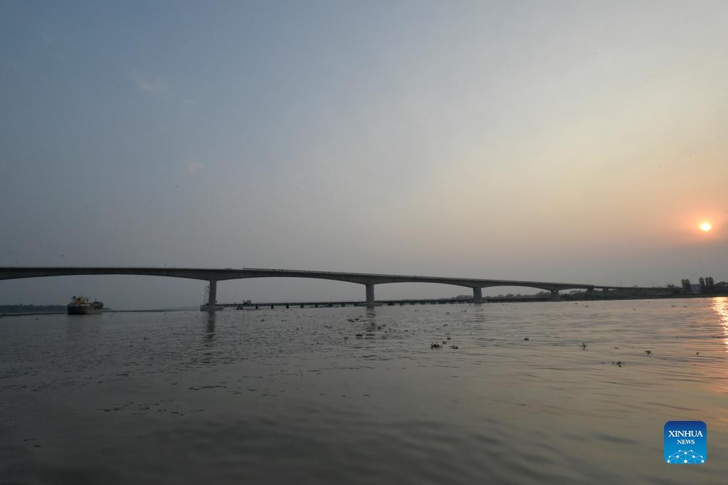Photo taken on March 23, 2022 shows the eighth Bangladesh-China Friendship Bridge under construction in Pirojpur, Bangladesh. China Railway 17th Bureau Group Co. Ltd. is constructing the bridge over Kocha River in Pirojpur district, 185 km southwest of Dhaka, under the management of China Railway Major Bridge Reconnaissance &Design Institute Co. Ltd. (Xinhua)