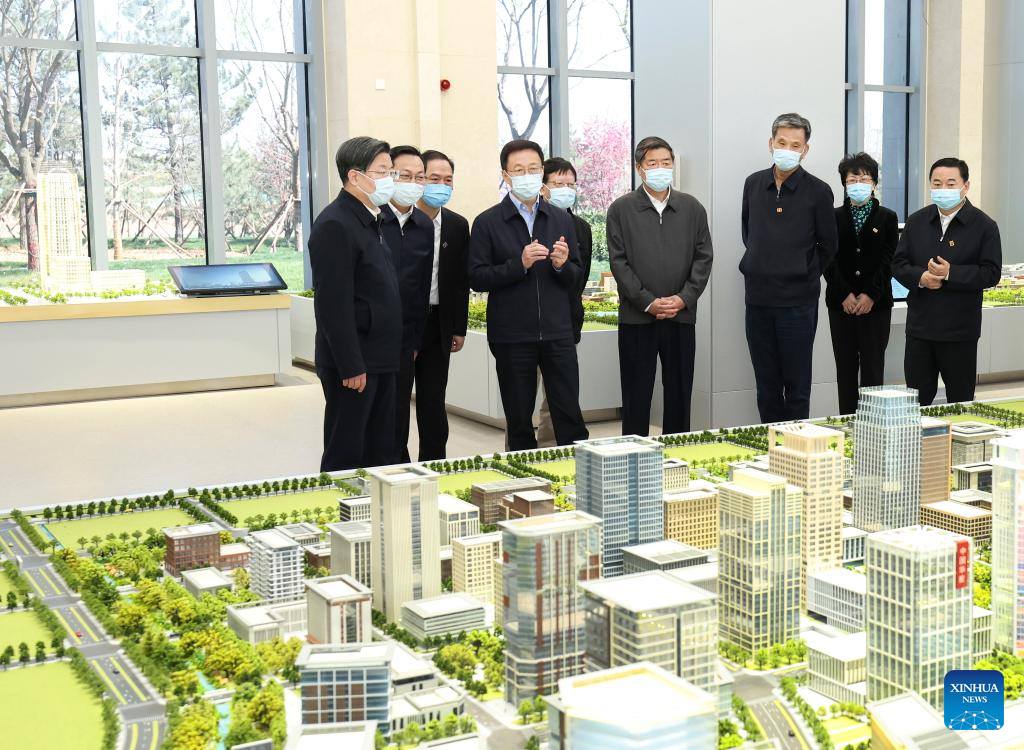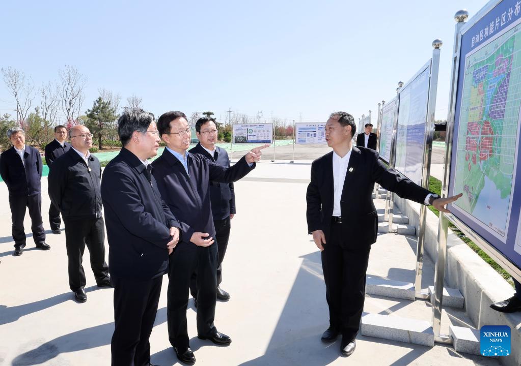 Chinese Vice Premier Han Zheng, also a member of the Standing Committee of the Political Bureau of the Communist Party of China Central Committee, inspects the Xiong'an New Area in north China's Hebei Province, April 15, 2022. (Xinhua/Pang Xinglei)