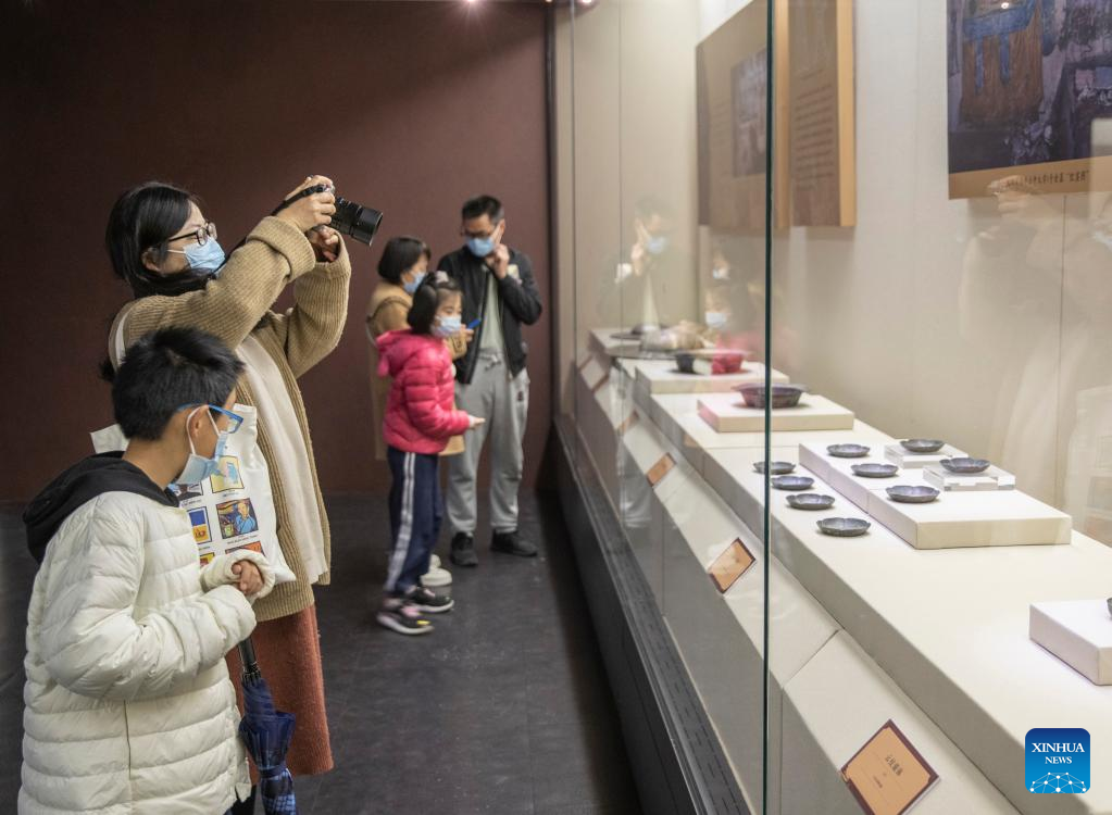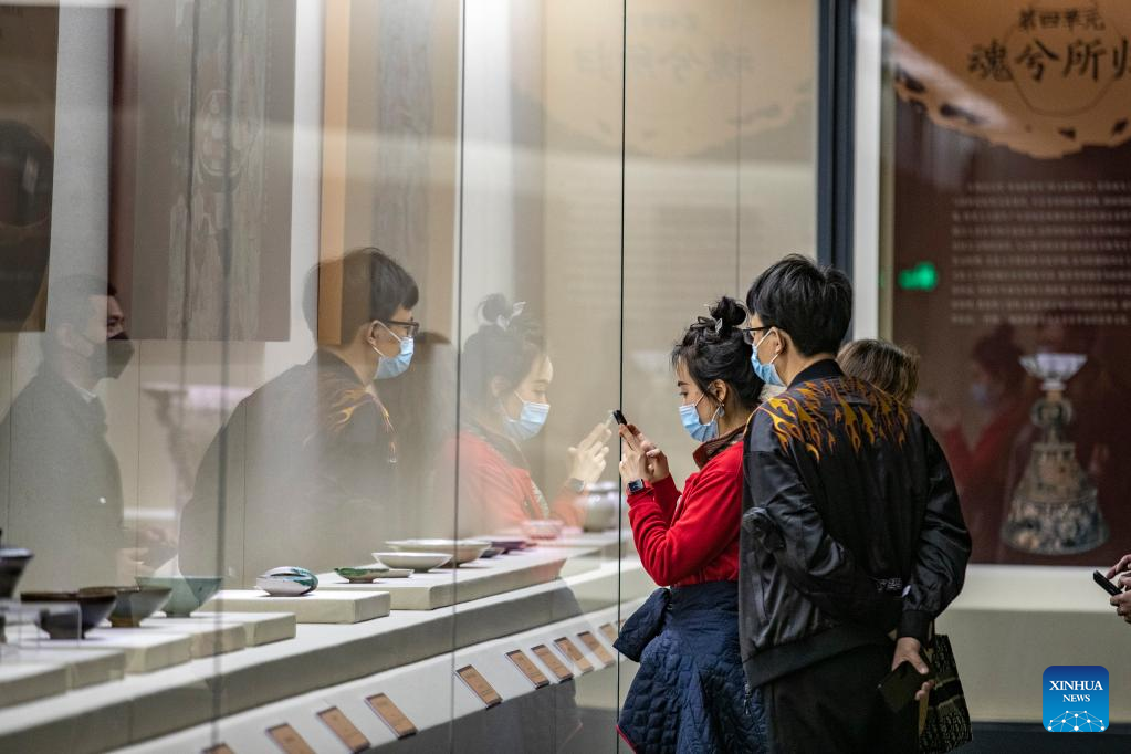 People visit an exhibition in Chongqing China Three Gorges Museum in southwest China's Chongqing, April 17, 2022. The exhibition displays precious cultural relics including bronze wares, ceramics, furniture and murals of the dynasties of Liao (907-1125), Jin (1115-1234), and Yuan (1271-1368). (Xinhua/Huang Wei)