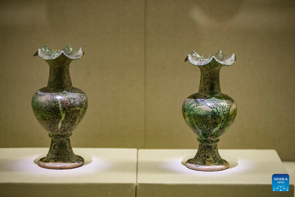 Photo taken on April 17, 2022 shows the exhibits in Chongqing China Three Gorges Museum in southwest China's Chongqing. The exhibition displays precious cultural relics including bronze wares, ceramics, furniture and murals of the dynasties of Liao (907-1125), Jin (1115-1234), and Yuan (1271-1368). (Xinhua/Huang Wei)