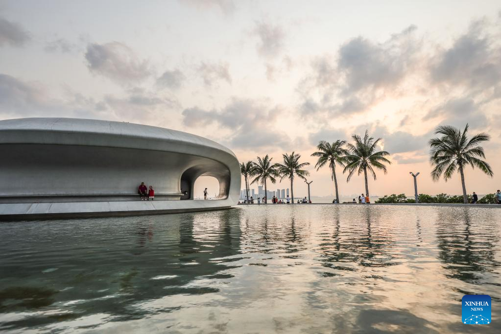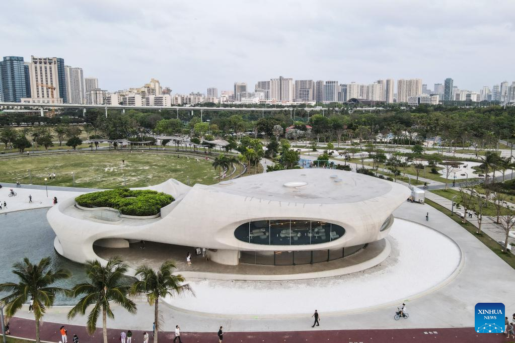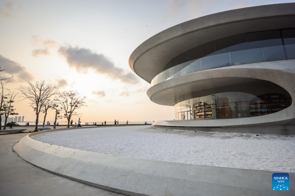 Photo taken on April 16, 2022 shows the Wormhole Library in the Haikou Bay in Haikou, south China's Hainan Province. (Xinhua/Zhang Liyun)