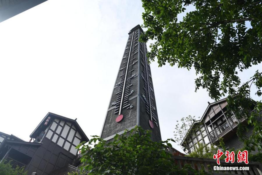 Abandoned chimney transformed into giant thermometer in Chongqing