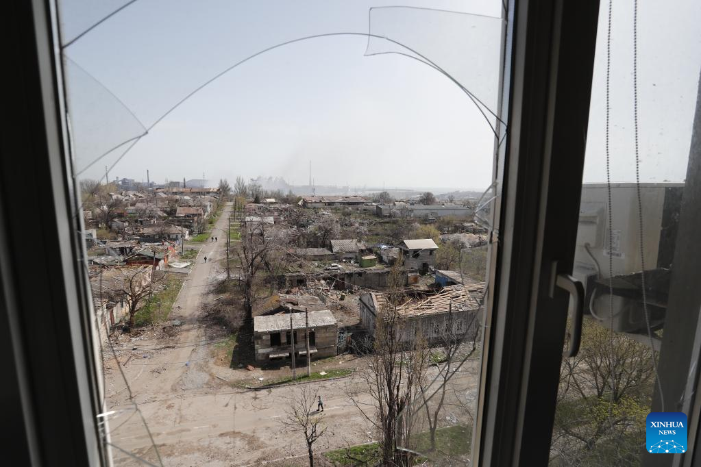 Photo taken on April 18, 2022 shows damaged buildings in Mariupol. (Photo by Victor/Xinhua)