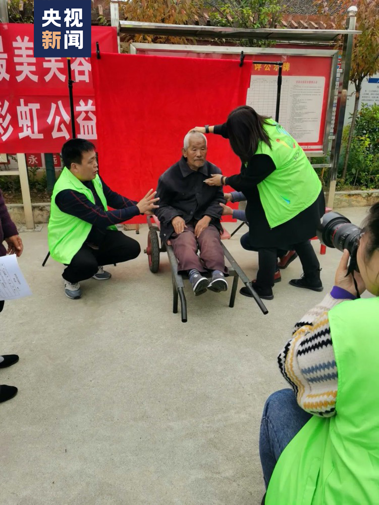 Photo shows an elderly villager with mobility difficulties posing for a picture in front of the lens of Yang’s camera. (Photo/CCTV)
