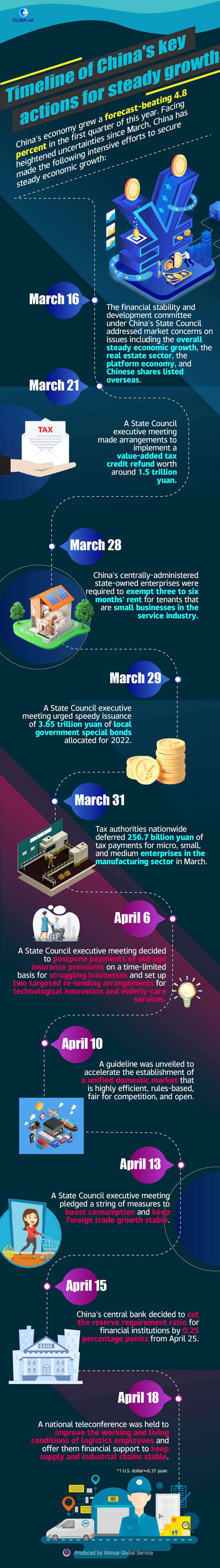 In the first three months, China's value-added industrial output went up 6.5 percent year on year, and fixed-asset investment jumped 9.3 percent. In particular, investment in infrastructure rose 8.5 percent.