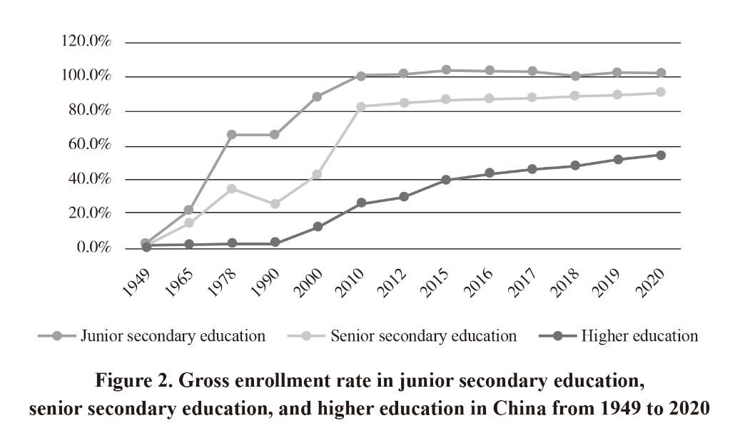 Equal access to education. Young people in China enjoy more equal and higher-quality educational opportunities as the country continues giving high priority to education. In 2021, the completion rate of compulsory education in China reached 95.4 percent, the gross enrollment rate in senior secondary education reached 91.4 percent, and the gross enrollment rate in higher education reached 57.8 percent, with 44.3 million students on campus, ranking first in the world. More and more young people have stepped onto this important path to success and excellence.