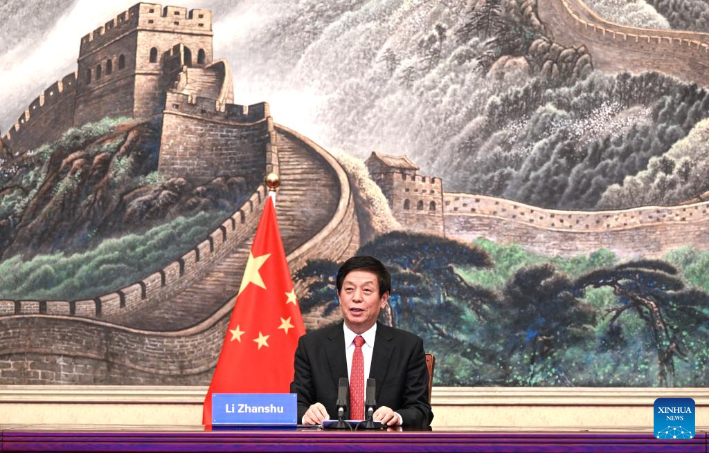 BEIJING, April 20 (Xinhua) -- China's top legislator Li Zhanshu and Malawi's parliament speaker Catherine Gotani Hara held a video conversation on Wednesday. During the discussion Li called for strengthening bilateral pragmatic cooperation.