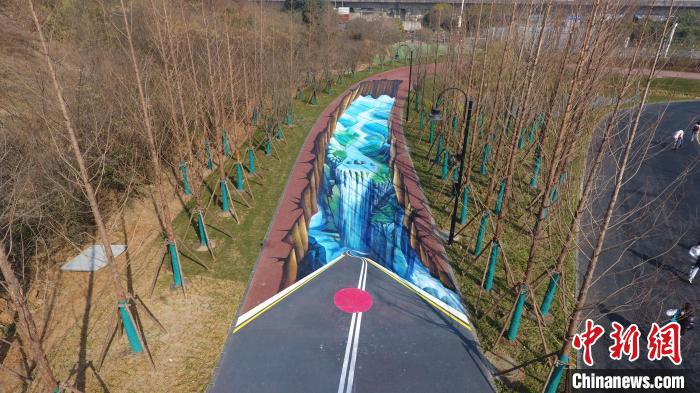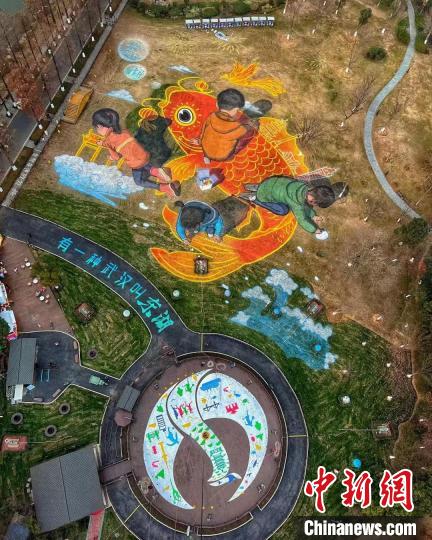 A young painter has drawn a lifelike image of a huge golden carp on a piece of land located on an island in the middle of the Donghu Lake in Wuhan, capital of central China’s Hubei Province. Alongside the golden carp, images of children playing on the ground can also be seen, which conveys the theme of harmonious co-existence between mankind and nature.