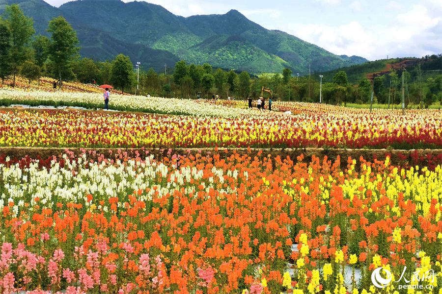 Photo shows a blooming flower field in Yubang village, Shaxian district, Sanming city, southeast China’s Fujian Province. (People’s Daily Online/Lin Xiaoli)