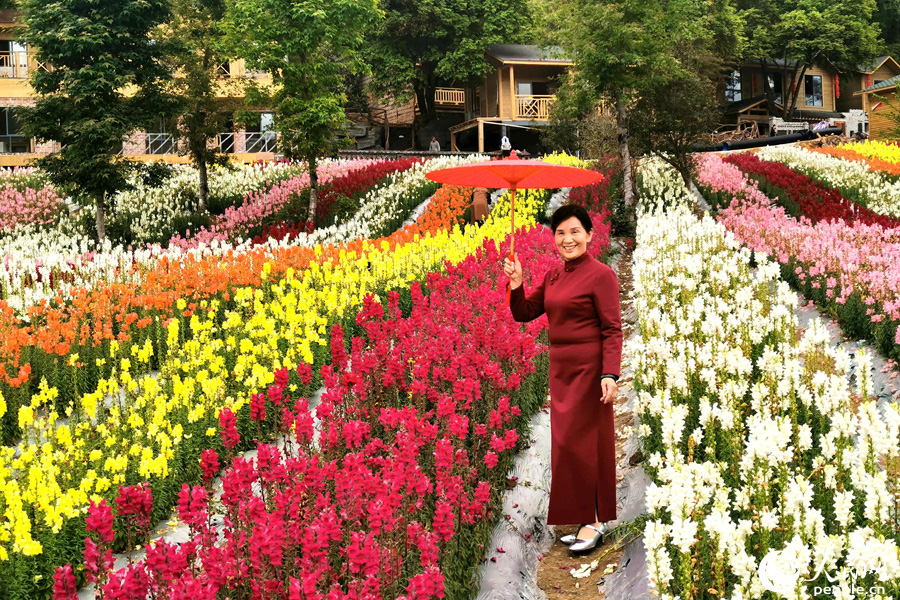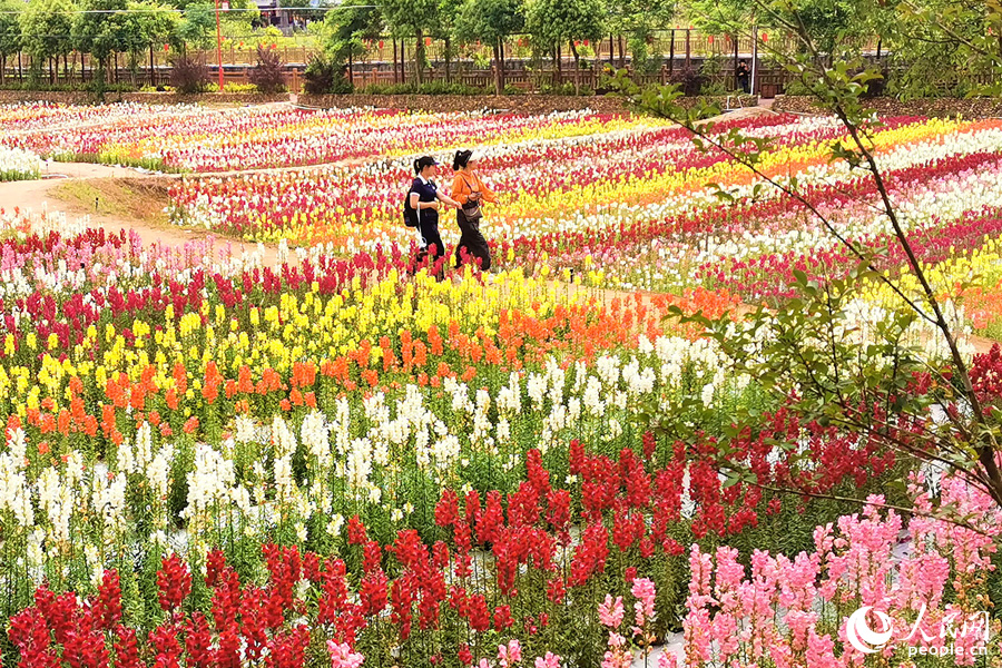 Visitors enjoy blooming flower fields in Yubang village, Shaxian district, Sanming city, southeast China’s Fujian Province. (People’s Daily Online/Lin Xiaoli)