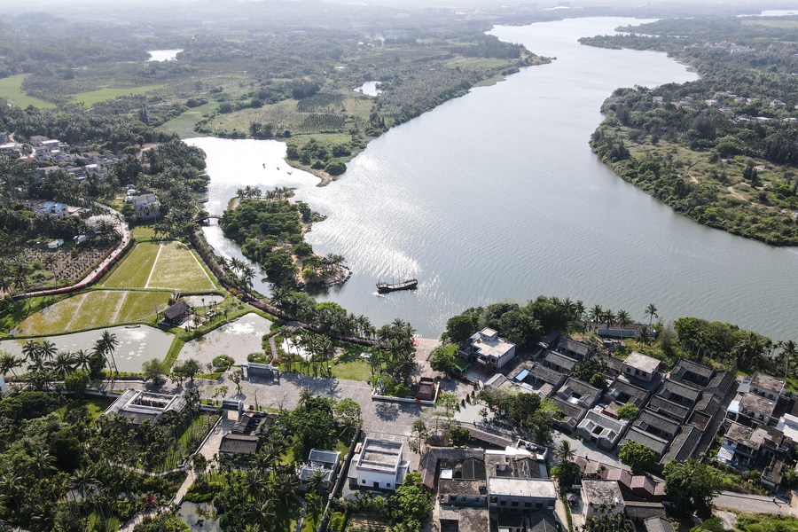 Aerial photo taken on April 8, 2022, shows the view of Liuke Village in Boao, south China's Hainan Province. (Xinhua/Zhang Liyun)