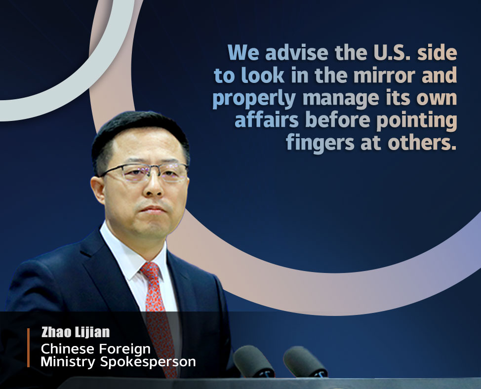 "We advise the U.S. side to look in the mirror and properly manage its own affairs before pointing fingers at others," Zhao said.