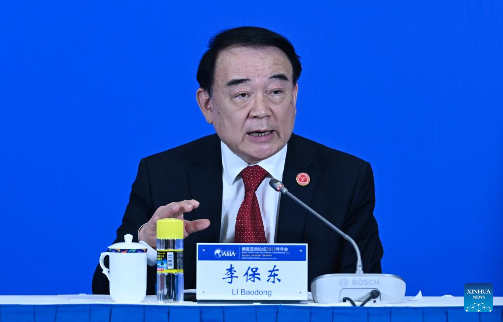 Li Baodong, secretary general of the Boao Forum for Asia (BFA), speaks at the closing press conference of the 2022 BFA annual conference in Boao, south China's Hainan Province, April 22, 2022. The three-day 2022 BFA annual conference concluded here on Friday. (Xinhua/Yang Guanyu)