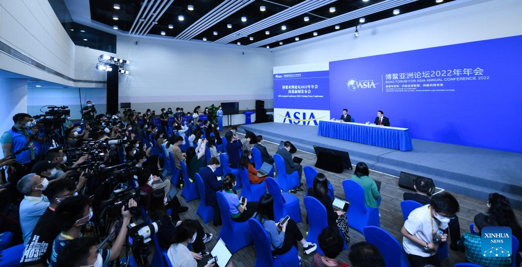 The closing press conference of the 2022 Boao Forum for Asia (BFA) annual conference is held in Boao, south China's Hainan Province, April 22, 2022. The three-day 2022 BFA annual conference concluded here on Friday. (Xinhua/Yang Guanyu)