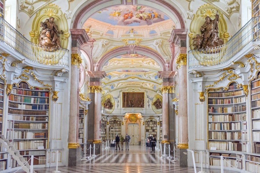 Photo taken on April 13, 2022 shows a view of the library of Admont Abbey in Admont, Austria. (Xinhua/Guo Chen)