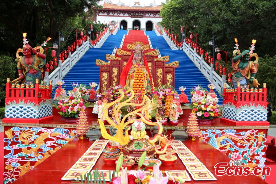 A grand ceremony marking the 1,062nd birthday of the sea goddess Mazu is held in her birthplace of Meizhou of Putian City, east China's Fujian Province, April 23, 2022. (Photo: China News Service/Lin Chunsheng)