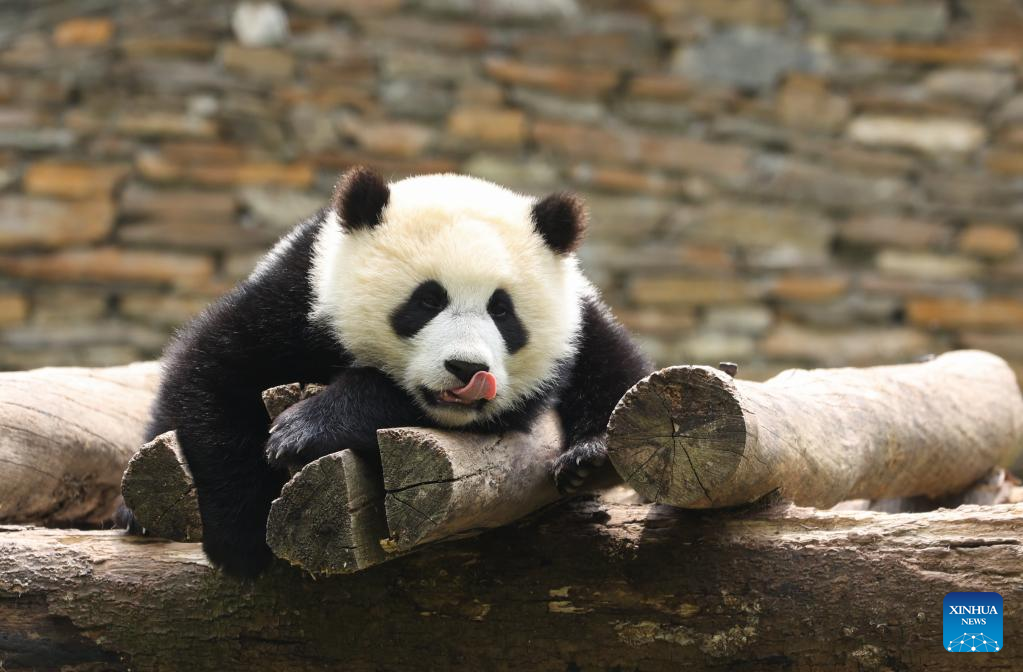 A giant panda is seen at Shenshuping base of China Conservation and Research Center for Giant Pandas in Wolong National Nature Reserve, southwest China's Sichuan Province, April 24, 2022. (Xinhua/Xu Bingjie)