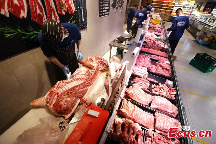 Pork products are seen at a Hema Fresh store in Chaoyang District, Beijing, April 26, 2022. (Photo: China News Service/Fu Tian)