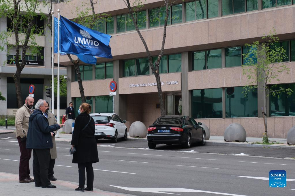 Photo taken on April 27, 2022 shows the headquarters of the World Tourism Organization (UNWTO) in Madrid, Spain. The UNWTO confirmed here on Wednesday that Russia had announced its intention to withdraw from the organization. (Xinhua/Meng Dingbo)