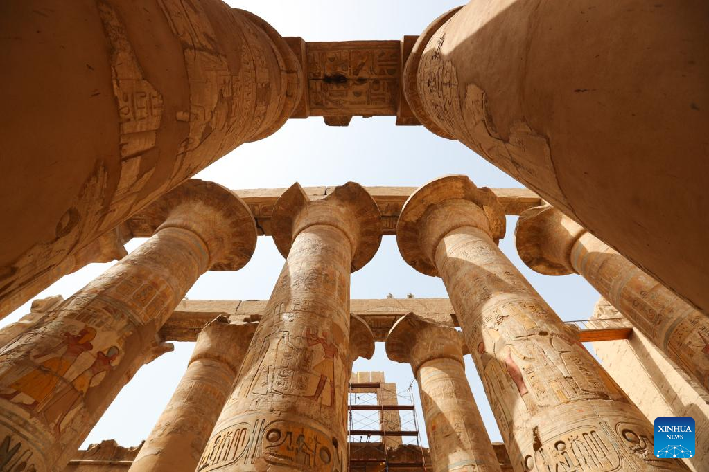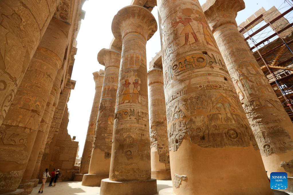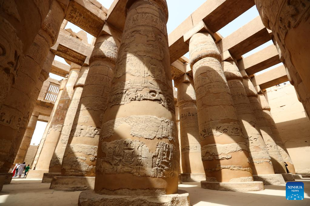 Photo shows huge columns at the Karnak Temple Complex in Luxor, Egypt, April 27, 2022.