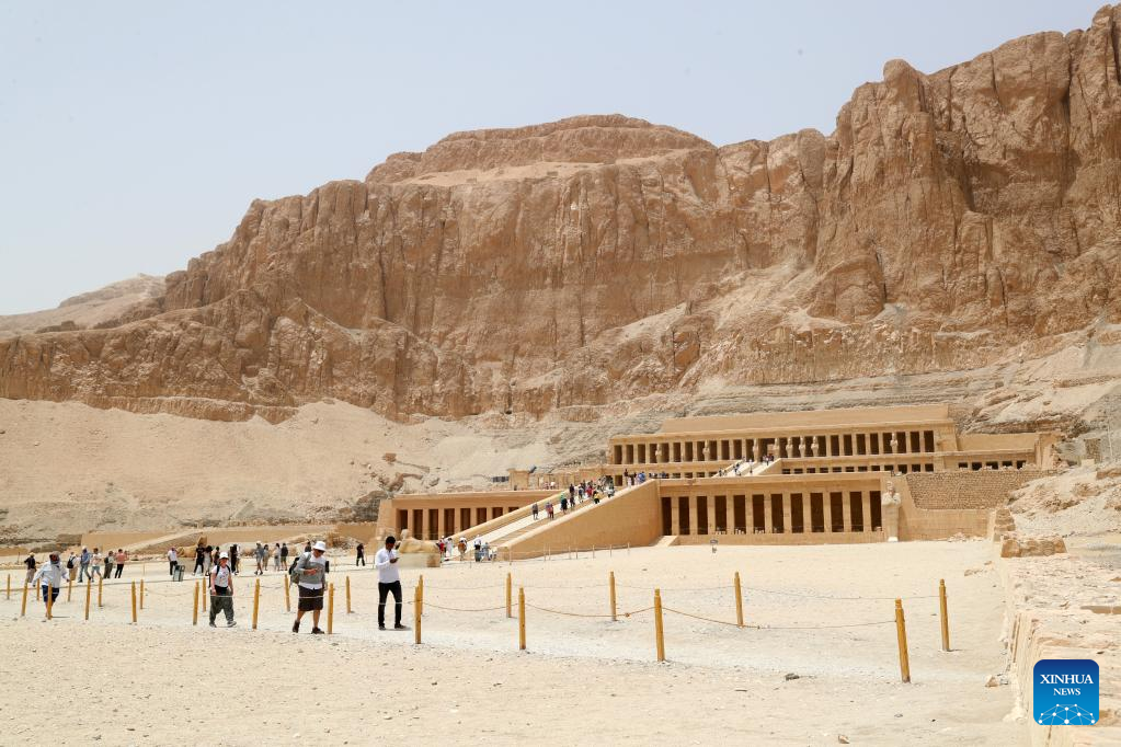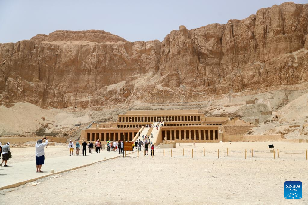 Tourists visit the Temple of Hatshepsut in Luxor, Egypt, April 26, 2022.