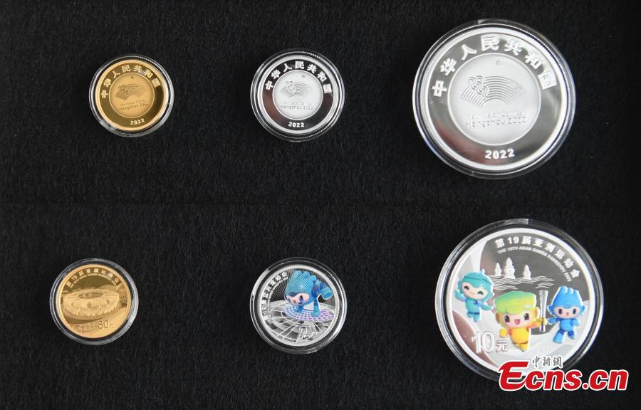 Photo shows the whole set of gold and silver commemorative coins for the 19th Asian Games in Hangzhou, east China’s Zhejiang Province issued on April 28. (Photo: China News Service/Wang Gang)